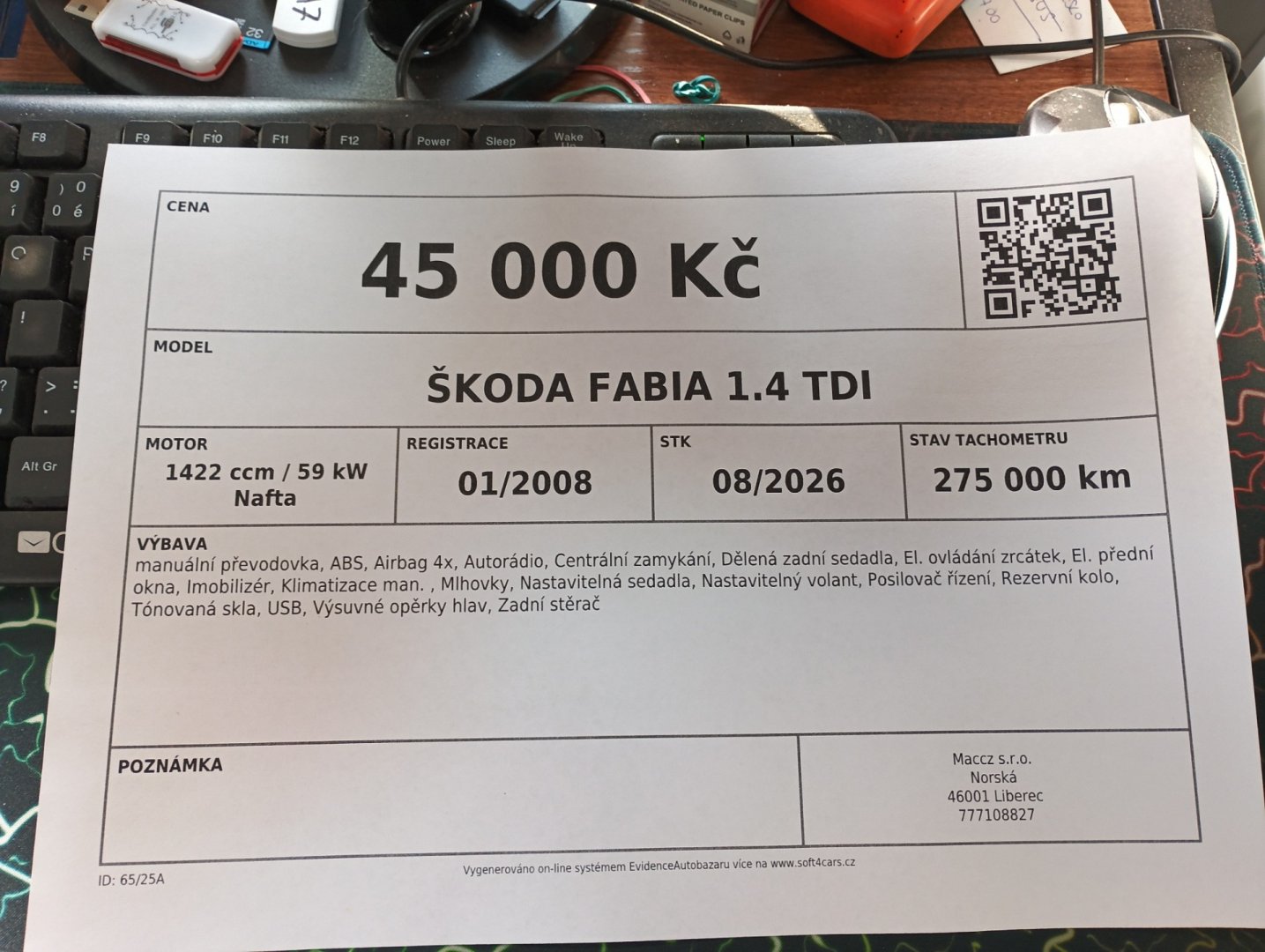 Stav tachometru 275 000 km