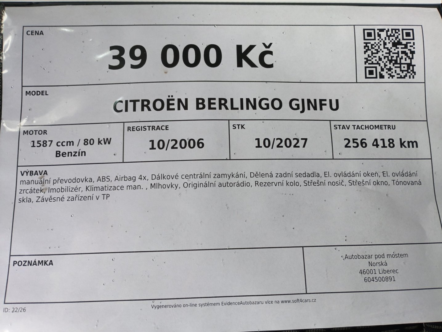Stav tachometru 256 418 km