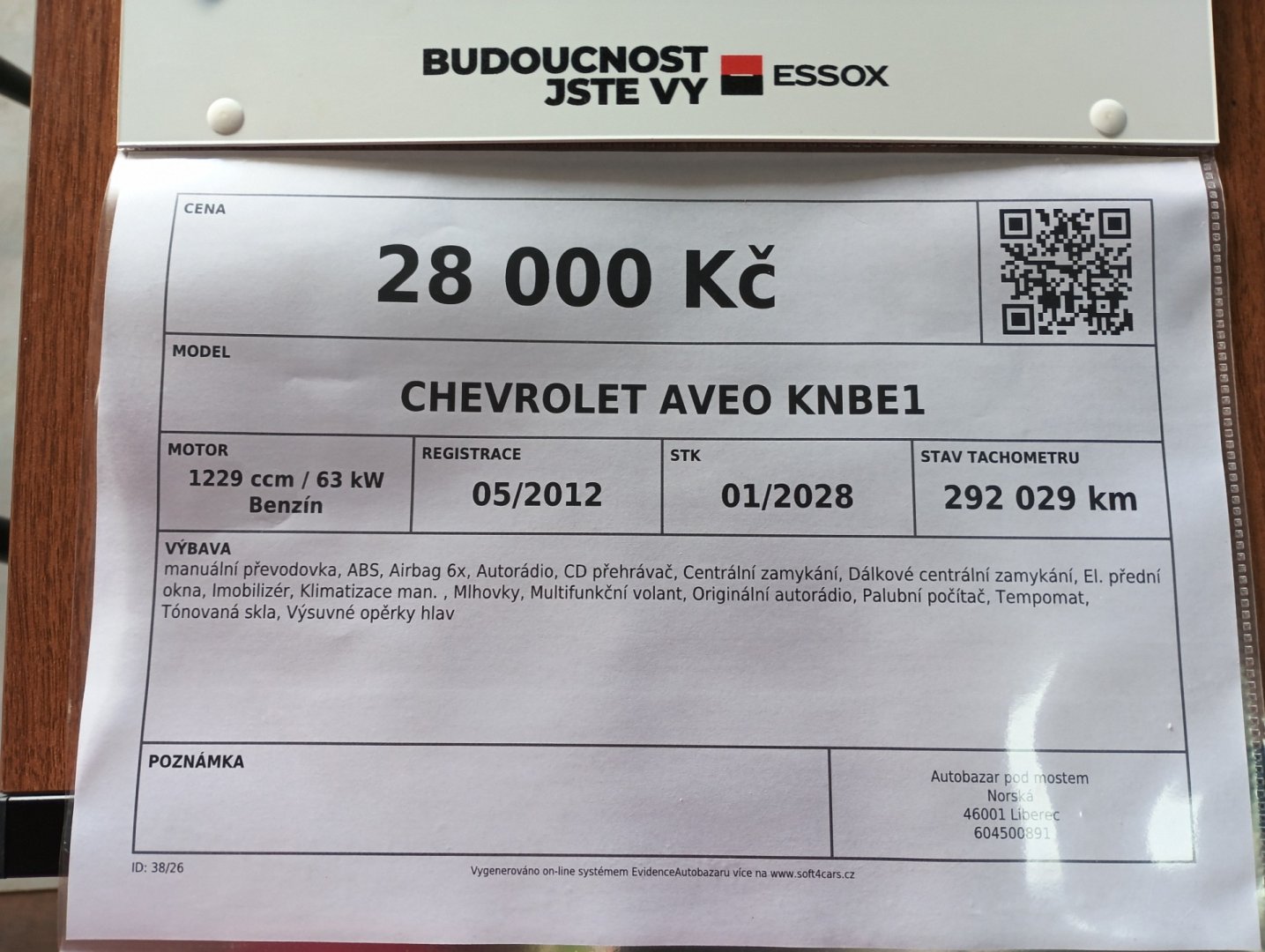 Stav tachometru 292 029 km